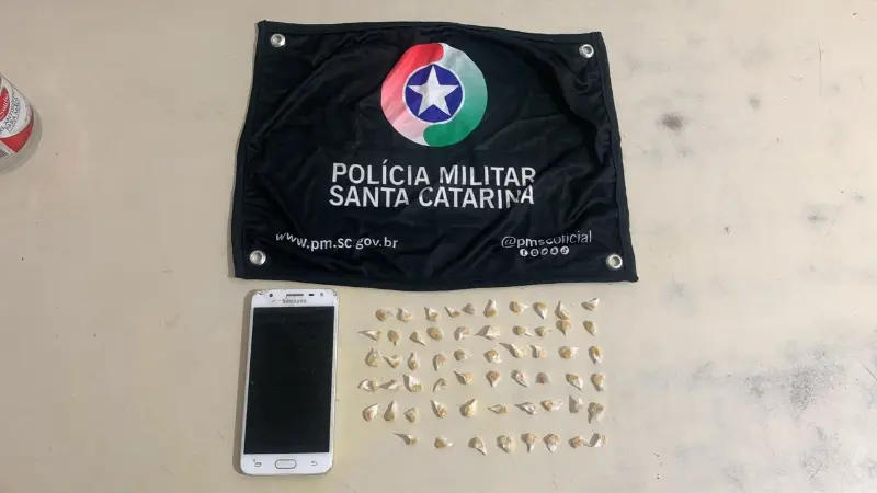 Ao ser recuperado, o pacote revelou-se uma “bola de plástico” contendo quatro porções fracionadas, conhecidas como “malotes”. Cada uma delas continha cerca de 15 pedras de crack, totalizando 58 pedras. O suspeito foi imediatamente detido e recebeu voz de prisão pelo crime de Tráfico de Drogas. O indivíduo foi conduzido à central de flagrantes de Araranguá, juntamente com o material apreendido, como parte da operação de desarticulação do ponto de tráfico.