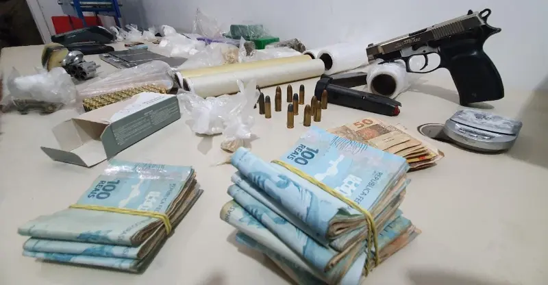 Diante dos fatos, dinheiro, drogas, armas e munições foram apreendidos e os suspeitos, conduzidos para delegacia da Polícia Civil de Araranguá .
