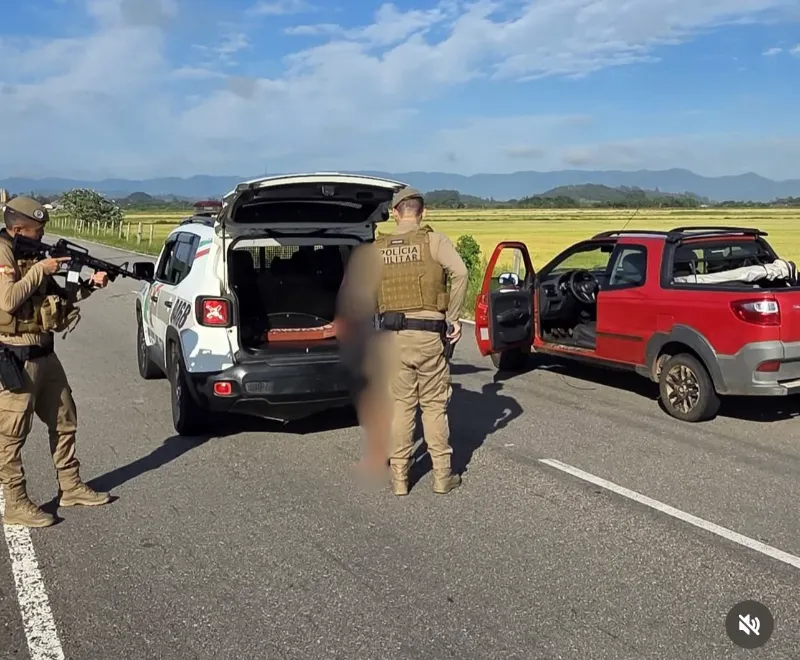 Após o alerta, guarnições de Passo de Torres localizaram o automóvel em deslocamento pela BR-101, no sentido ao Rio Grande do Sul. Foi iniciado acompanhamento tático e a abordagem ocorreu nas proximidades da entrada do município, com êxito.