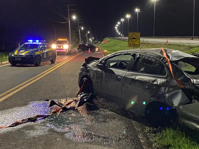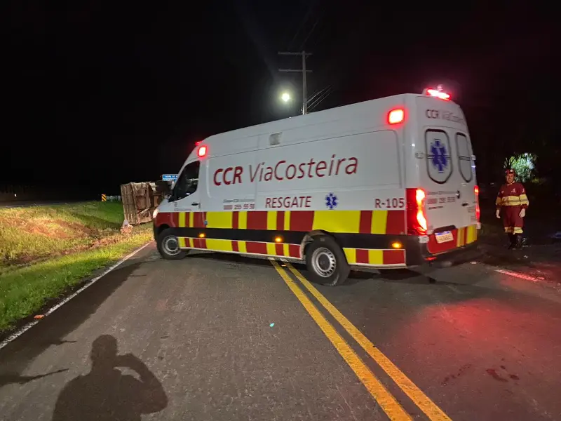 Na noite de quinta-feira, dia 12, por volta das 22 horas, a Polícia Rodoviária Federal e a equipe da concessionária CCR Via Costeira foram acionadas para atender a um acidente de trânsito na pista Sul da BR 101, nas proximidades da comunidade de Vila Conceição, a aproximadamente 300 metros após os viadutos que conectam a BR 101 à SC 290, próximo ao Posto Fratelli.