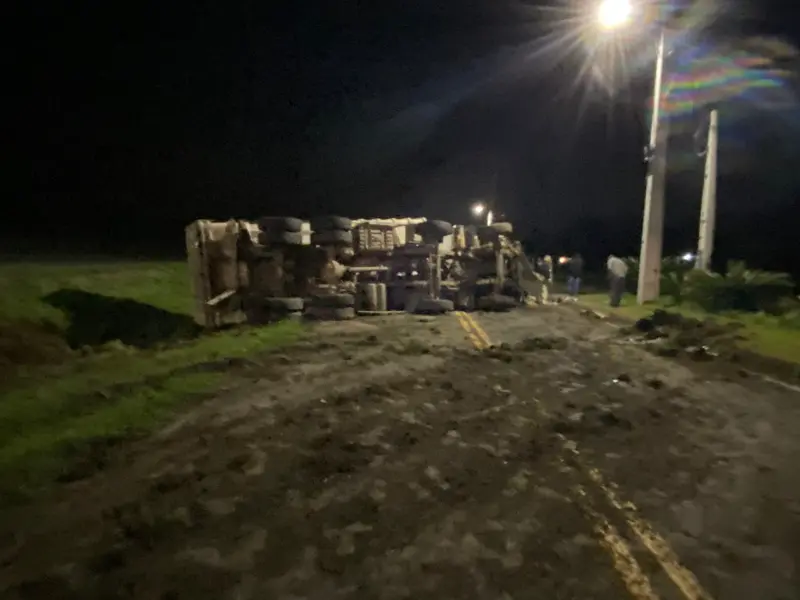 A margem da BR 101, que dá acesso à pista sul da rodovia, permaneceu interditada por aproximadamente três horas para a complexa operação de remoção do caminhão.