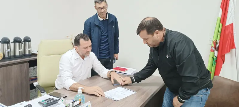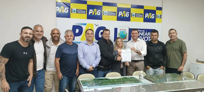 Em ato na manhã desta segunda-feira, dia 7, no gabinete do Prefeito Kekinha dos Santos, com a presença do Vice-prefeito Jonatã Coelho, Secretário de Obras Jusa Santos, Presidente da Câmara de Vereadores, Paulo Roberto da Silva, Vereadores Jaison Leal Pereira, Maria Nunes, Leandro Jeferson Rodrigues,Pagé, Anderson Joaquim dos Santos, secretário de Turismo e Esporte, Felipe Santos, foi entregue a ordem de serviço ao empresário Juliano Manenti, que autoriza a empresa Manenti Empreiteira e Terraplanagem Ltda, a iniciar a execução de pavimentação com lajotas sextavadas de concreto e meio fio da Rua Joinville (extensão total = 375.16m), no Bairro Santa Fé, no Municipio de Balneário Gaivota/SC.