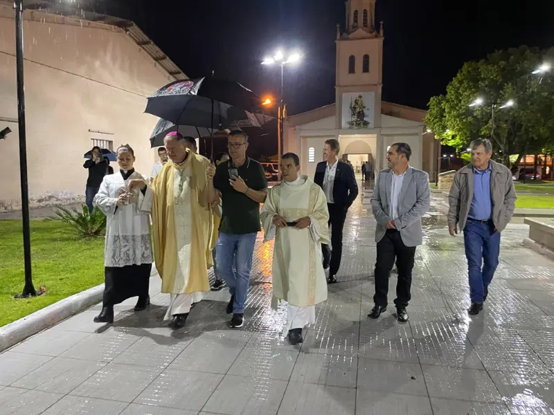 Após a celebração religiosa, mesmo sob chuva, bispo Dom Jacinto percorreu a praça, abençoando todo o ambiente.