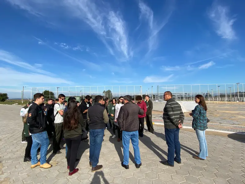 Professores e alunos do IFC – campus Santa Rosa fizeram um tour por parte da extensa área do parque municipal de eventos do município, que está passando por obras de pavimentação do estacionamento, de ruas, iluminação e construção de pista de skate. O objetivo foi de verificar pessoalmente o local para coletar informações que visem a elaboração de um projeto de paisagismo. “Conversamos há algum tempo com a direção do IFC para nos auxiliar no trabalho de desenvolvimento e melhoramento do parque, possibilitando também uma maior integração entre o Instituto e Santa Rosa do Sul”, explica o prefeito Almides Roberg da Rosa, que fez questão de conversar com os alunos.