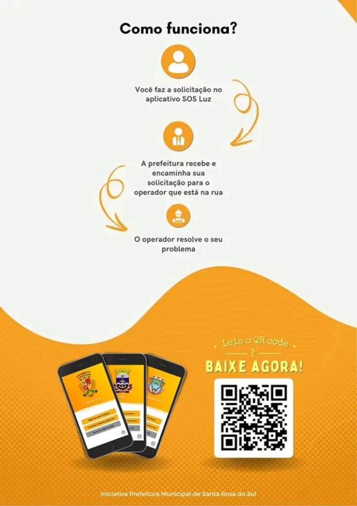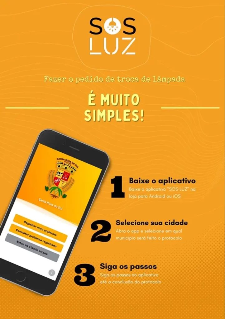 Já está disponível aos cidadãos sulsantarosenses o SOS LUZ, aplicativo que torna mais fácil o acionamento da equipe de iluminação pública para a manutenção dos equipamentos, como troca de lâmpadas ou outras necessidades referentes ao setor.