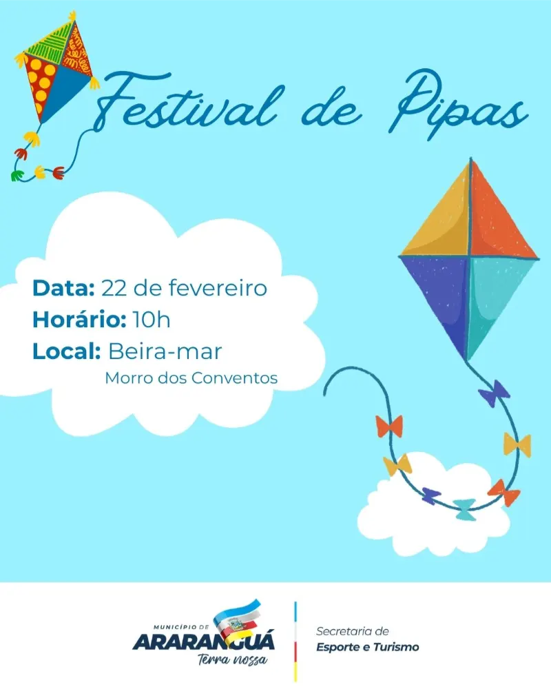 O céu vai ficar ainda mais colorido na beira mar em Morro dos Conventos, com o Festival de Pipa! As pipas serão disponibilizadas no local — é só chegar e participar!