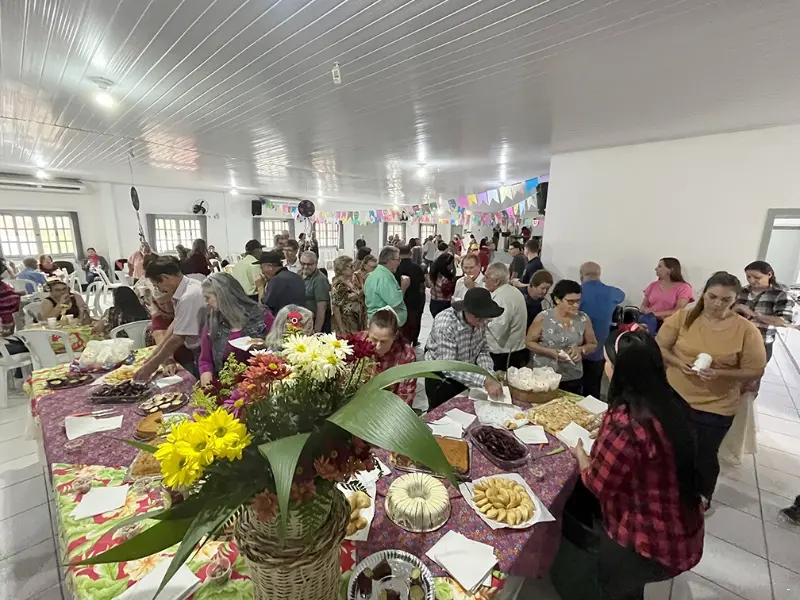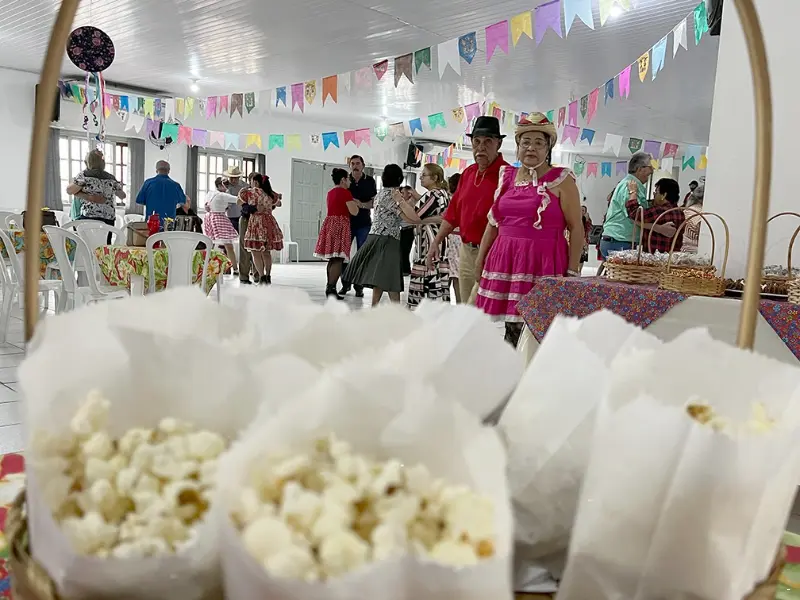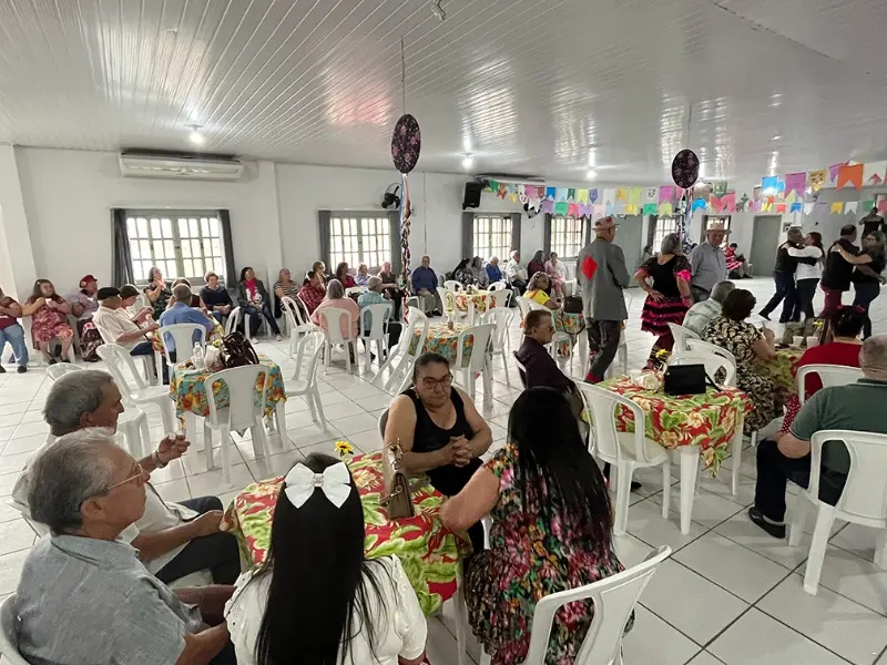 Com direito à decoração e café da roça, os membros da terceira idade de Jacinto Machado lotaram o centro de convivência na tarde desta terça-feira, 25 de julho, para a última celebração de julho com um grande Arraiá. Vestidos a caráter, os convidados dançaram quadrilha e celebraram a vida com música ao vivo.