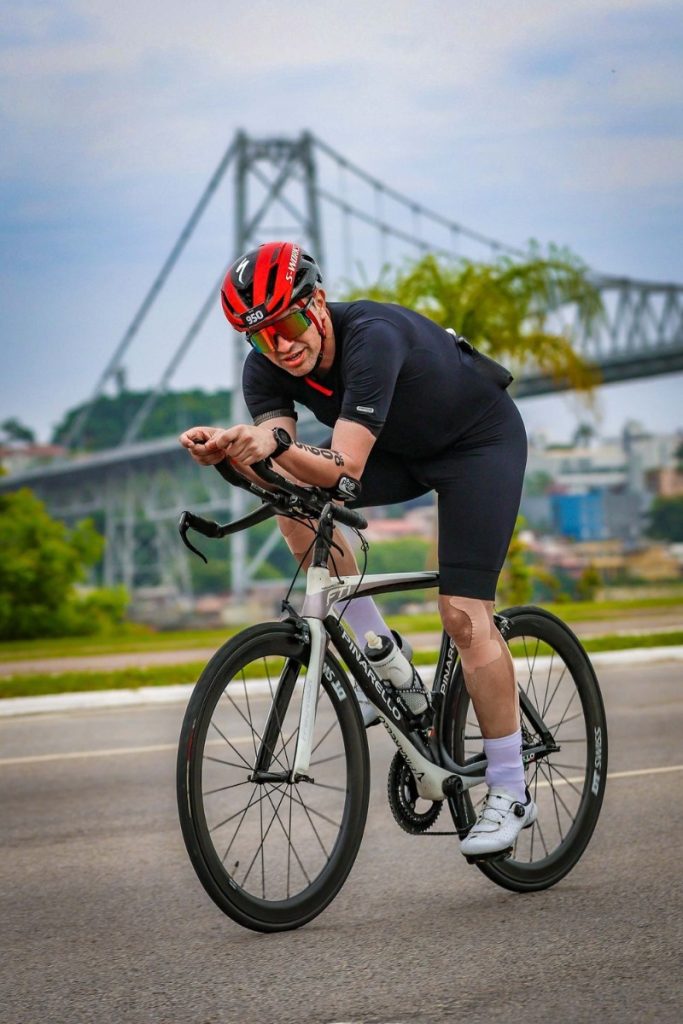 Morador de Sombrio há seis anos e colaborador da empresa Mega Luz, Carlos começou sua trajetória esportiva no ciclismo, em meio à pandemia de 2020/2021. A partir daí, a paixão pelo esporte cresceu e evoluiu para o triatlo, incorporando também a corrida e a natação — um caminho que culminou na realização de um grande sonho: participar de um Iron Man.