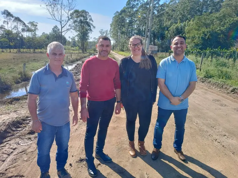 Na manhã de segunda-feira, 10 de julho, o prefeito Kekinha, vice-prefeito Jonatã, secretário de Obras, Jusa Santos e a engenheira civil Juliana Tiscoski, responsável pelo projeto técnico, estiveram conferindo o trecho que será preparado para receber asfalto. As máquinas da Prefeitura já estão efetuando a limpeza do valo mestre. A obra deverá receber drenagem pluvial, reforço do subleito, sub-base, base, camada de regularização e revestimento asfáltico.