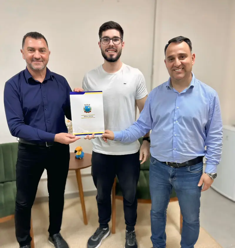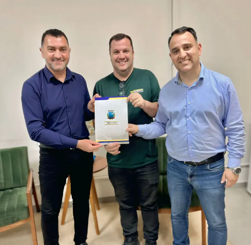 O prefeito Everaldo dos Santos, Kekinha e seu vice, Jonatã Coelho, receberam no gabinete, na manhã desta terça-feira, dia 08, os representantes das empresas vencedoras das licitações para pavimentação das ruas L, M e N, no bairro Jardim Ultramar.