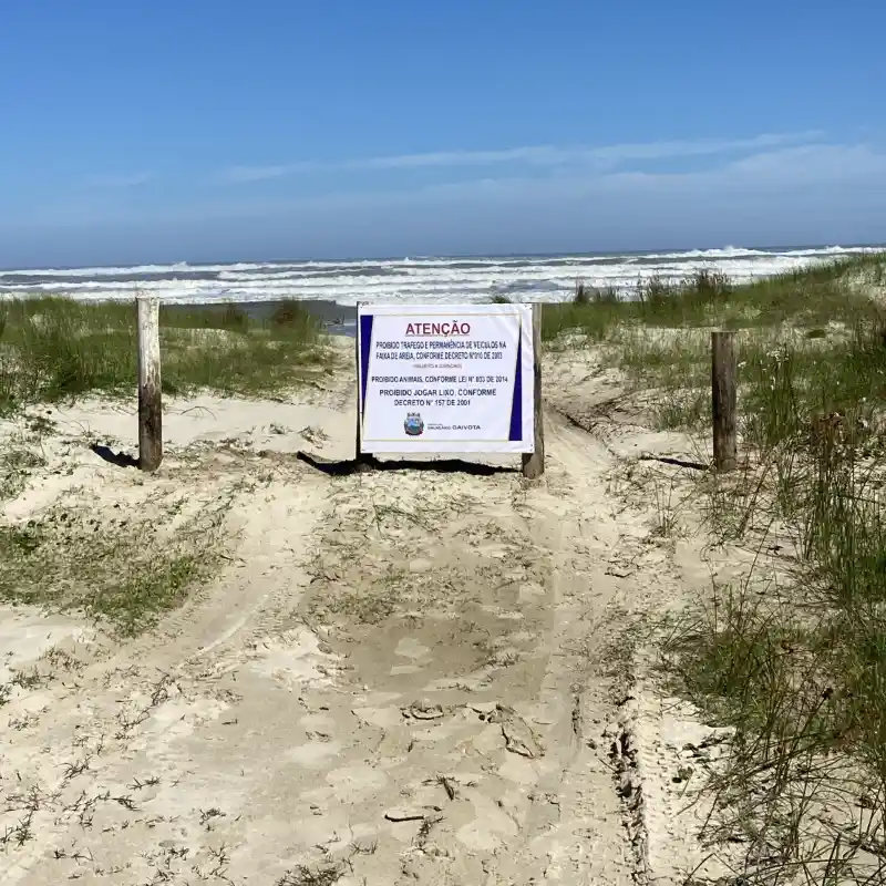 A Secretaria Municipal de Meio Ambiente de Balneário Gaivota informa que realizou o fechamento de diversos pontos de acesso de veículos à faixa de areia das praias do município, em conformidade com a legislação ambiental vigente e em atendimento às determinações judiciais aplicáveis.