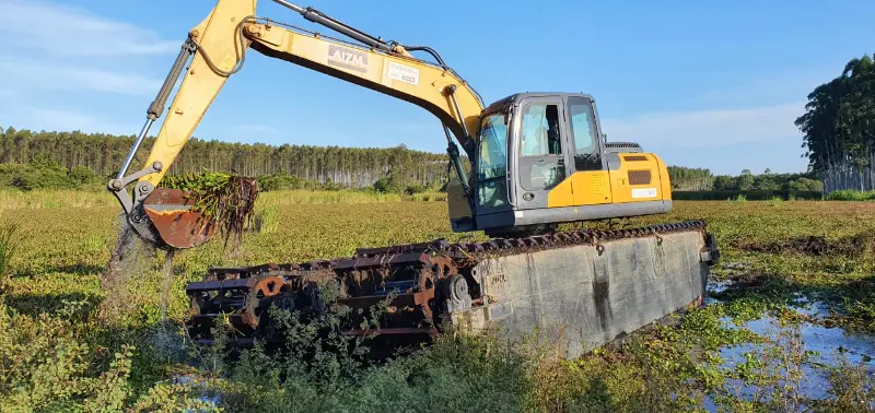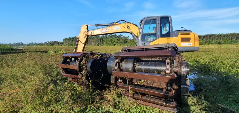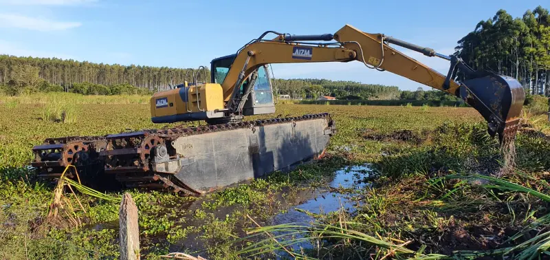 De acordo com a Secretária de Agricultura e Pesca, Bruna Nunes, os trabalhos com a máquina Anfíbia iniciaram pela Lagoa do Rio Novo, no lado Sul e seguem em direção a parte Norte. “Todas as lagoas que estão com infestação de aguapés serão limpas, devolvendo à natureza o cartão postal e também o benefício que representam para o desenvolvimento sustentável”, pontua Bruna.