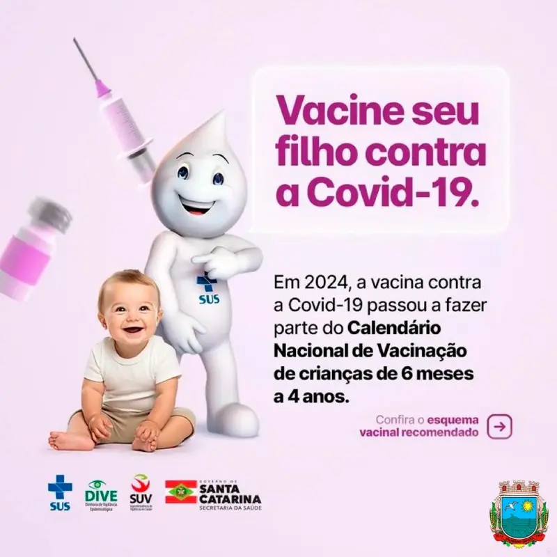 A Secretaria de Saúde de Balneário Gaivota, por meio do serviço de Vigilância Epidemiológica, vem informar a população sobre as alterações no calendário vacinal para o ano de 2024 por meio do Programa Nacional de Imunização, frente ao Informe de Estratégia de Vacinação Campanha Covid-19.