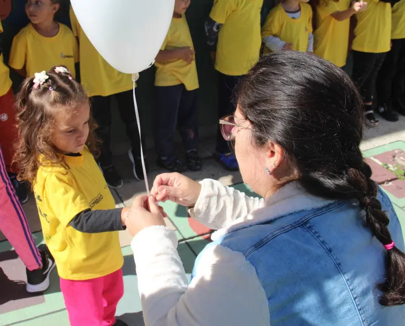 Este foi definido como um dia para refletir e fortalecer a campanha de conscientização por mais paz, amor, compaixão e gratidão nas escolas. Nesta quinta-feira, dia 20, às 9h30 da manhã, os pequenos sombrienses, alunos de todos os CEIs soltaram balões brancos para celebrar esta data.