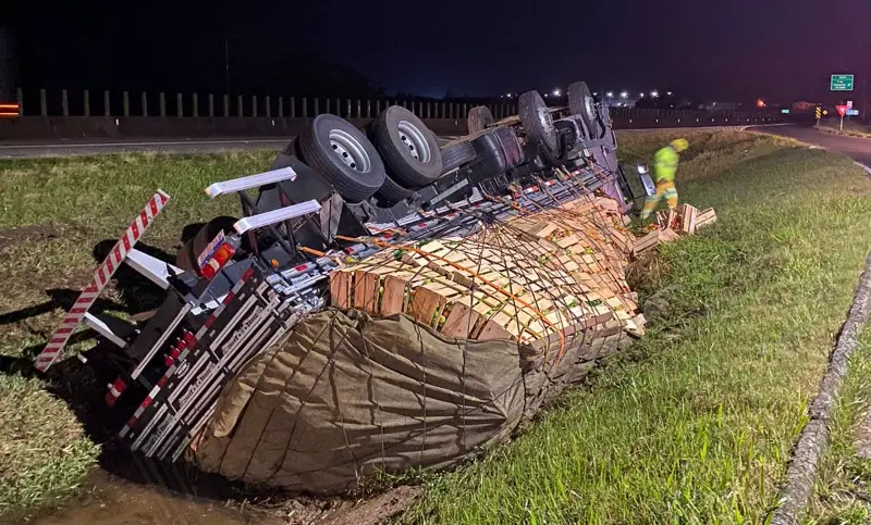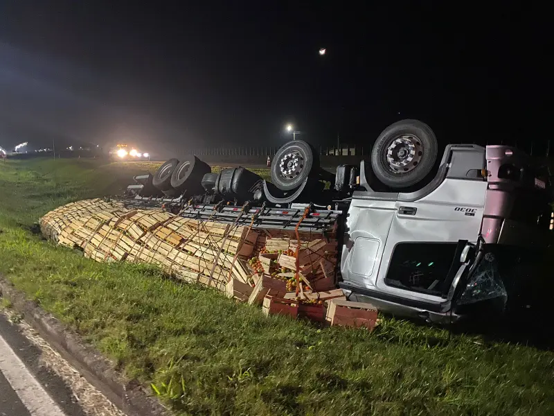 De acordo com informações obtidas pela reportagem do 2Linhas.com, que esteve no local, o caminhão seguia no sentido norte-sul quando, ao passar por um desnível em uma curva, o motorista perdeu o controle do veículo, resultando no capotamento.
