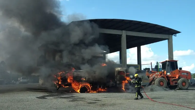 Ao chegar ao local, a natureza do incêndio foi confirmada, revelando danos irreparáveis ao veículo. O caminhão estava em fase final de carregamento quando as chamas eclodiram, exigindo uma resposta imediata das autoridades. O combate ao fogo iniciou-se assim que a guarnição chegou ao local, com aproximadamente 1000 litros de água e 500 litros de espuma sendo utilizados para extinguir as chamas.