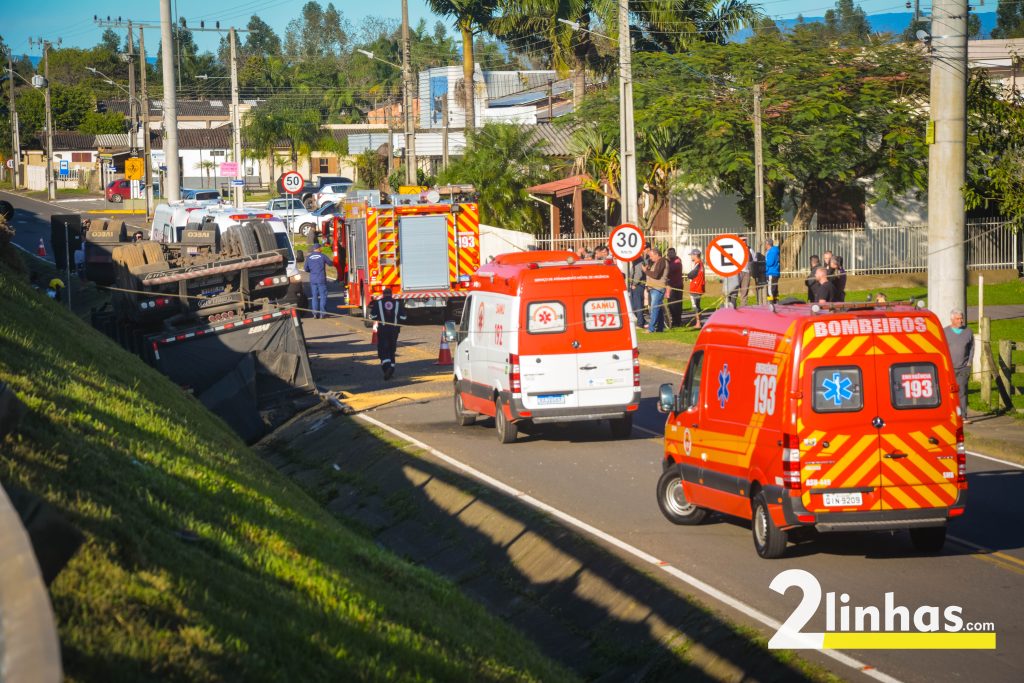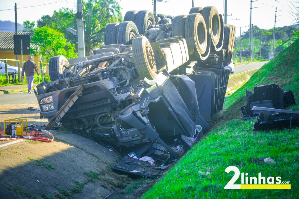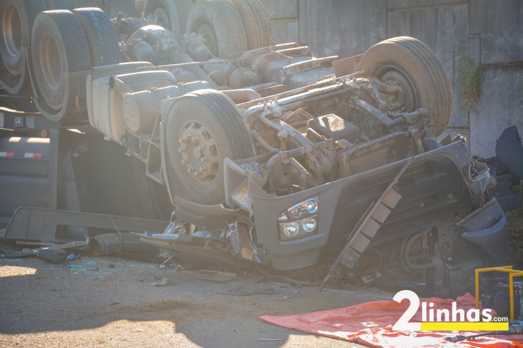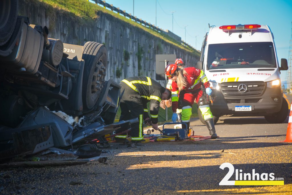 Segundo informações, após a queda, o motorista do caminhão ficou preso às ferragens e o acidente mobilizou equipes do SAMU, Corpo de Bombeiros, CCR ViaCosteira e Polícia Rodoviária Federal.