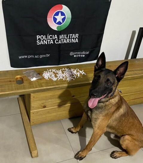 Diante do fato, os policiais solicitaram apoio do canil setorial do 19º Batalhão de Polícia Militar e efetuou a busca no local. Durante a ação policial, o cão de faro Argo foi empregado e localizou em meio aos entulhos, um pacote com uma porção de cocaína (9,4g) e um pacote contendo aproximadamente 51,2g de pedras de crack embaladas para a comercialização.