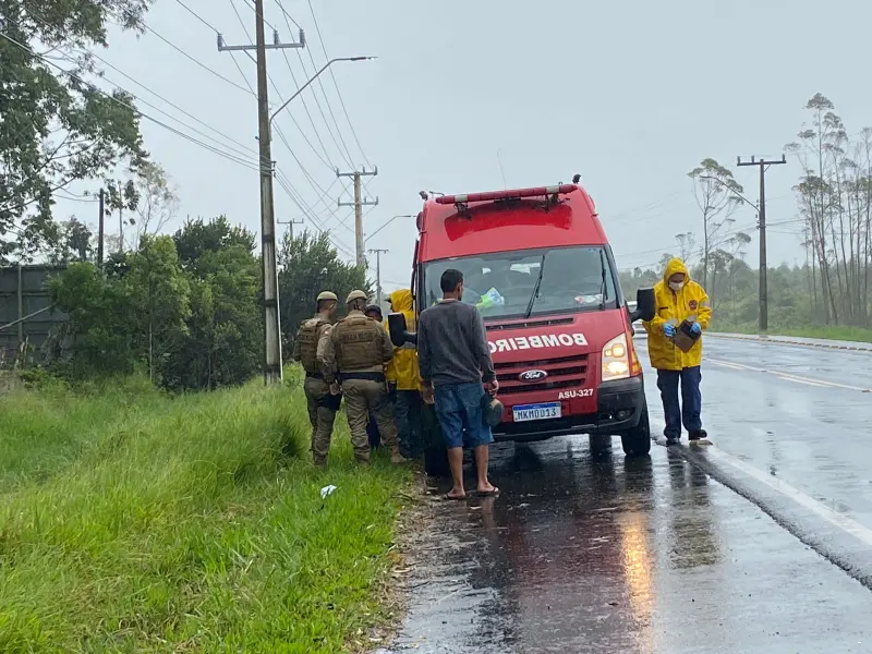 O condutor do Up, na tentativa de evitar a colisão, buscou o acostamento, mas acabou perdendo o controle e caindo no barranco, capotando por vários metros. O veículo sofreu grandes danos, porém, por sorte, o motorista não sofreu ferimentos. O Corpo de Bombeiros conduziu o condutor para o Hospital Dom Joaquim, em Sombrio, para passar por uma avaliação médica.