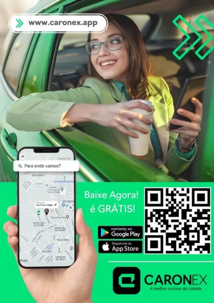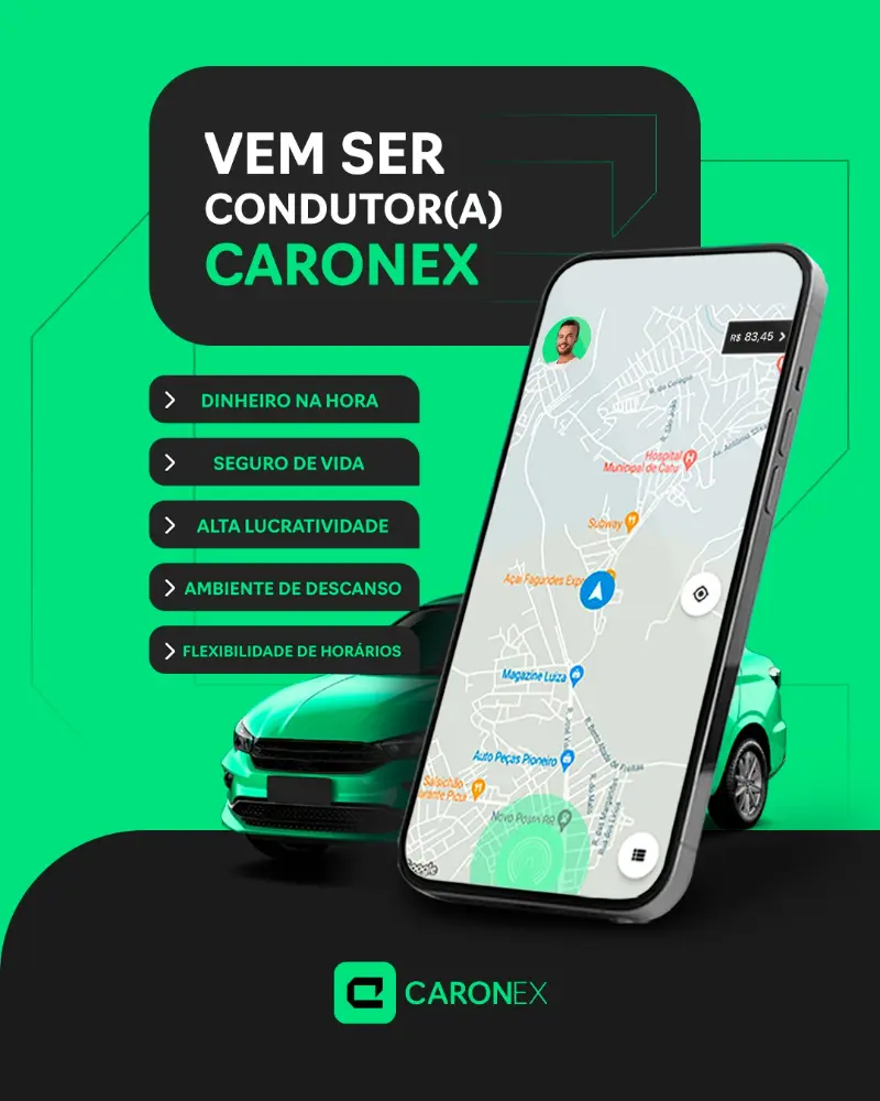 - Redes Sociais: Siga-nos no Facebook: Caronex APP, e no Instagram: @caronex.app