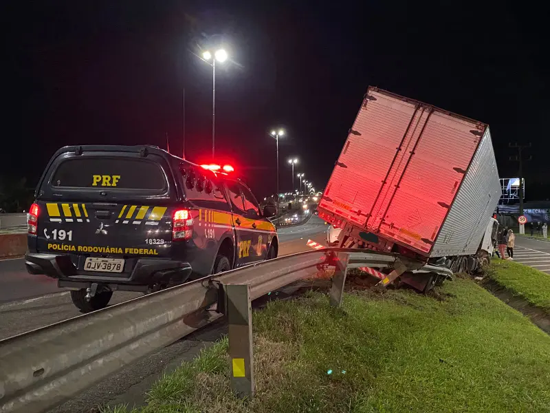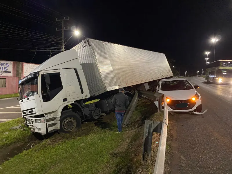 Nesse momento crítico, o condutor da carreta que seguia atrás precisou executar uma manobra ainda mais audaciosa para evitar a colisão com o HB20. Apesar das tentativas de frenagem, os dois veículos colidiram guard rail da BR 101, resultando na invasão da carreta em uma valeta próxima.