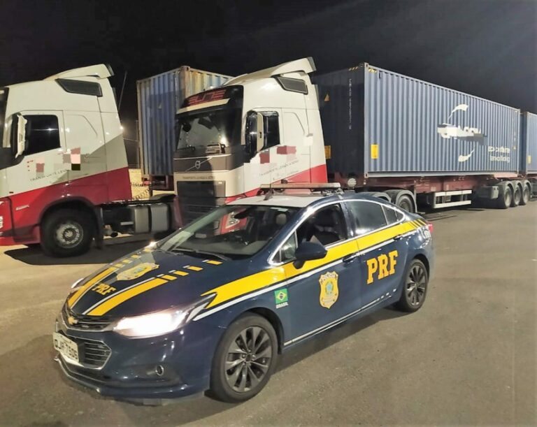 Conforme a PRF, os dois conjuntos pertencem à mesma empresa. Um transportava 9.505 e o outro 8.910 quilos a mais, ambos com polietileno, totalizando 18.415 quilos de excesso.