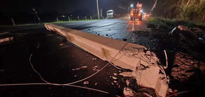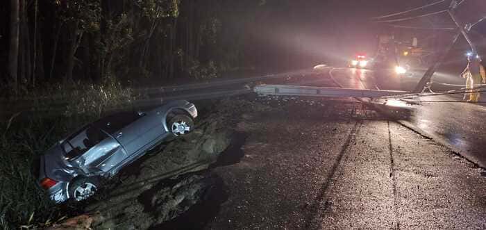 No início da madrugada do último sábado (4) um carro colidiu contra um poste na Curva da Terneira na SC 449 Rodovia José Tiscoski que liga Balneário Gaivota a Sombrio. O fato aconteceu por volta das 00H40min. De acordo com as informações um veiculo VW Golf que seguia sentido Balneário Gaivota Sombrio. Em um momento fr chuva intensa o carro, onde havia 4 pessoas, acabou perdendo o controle e colidindo em um poste de concreto na rodovia. Com o forte impacto da colisão,o poste quebrou em duas partes e caiu em meio a pista da na Rodovia José Toscoski. Diante dos fatos, o Corpo de Bombeiros, SAMU, Polícia Militar, Celesc e equipe da Dunet estiveram no local realizando os procedimento cabíveis. As vítimas tiveram ferimentos leves e foram conduzidas para o Hospital Dom Joaquim para avaliação médica. O transito ficou lento em uma pista por vários minutos.