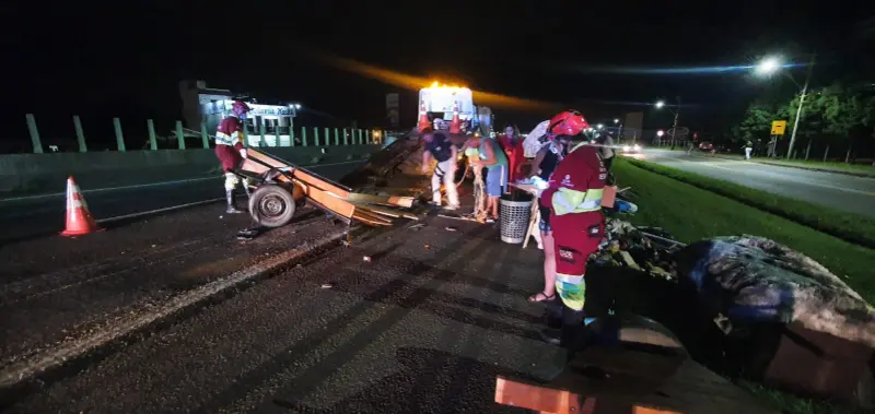 O reboque ficou completamente destruído devido à colisão, e os demais veículos também sofreram danos significativos. Populares se prontificaram a ajudar na retirada da pequena mudança que estava sendo transportada no reboque danificado.