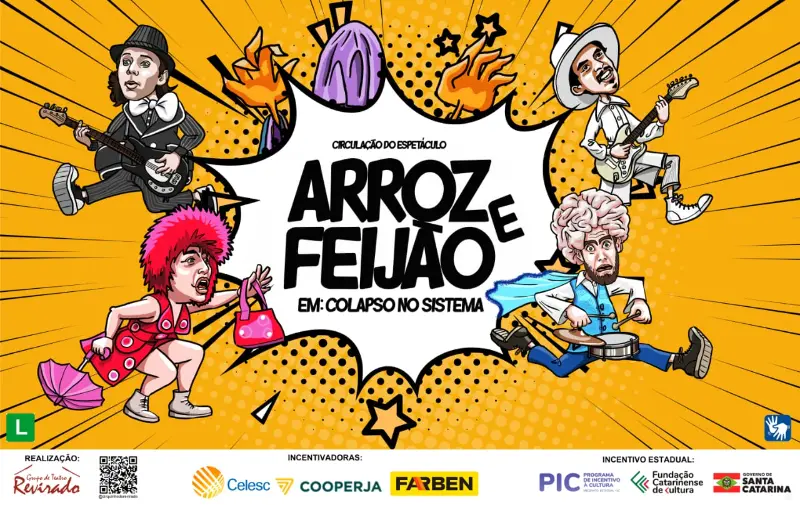 Grupo de Teatro Revirado, através Programa de Incentivo à Cultura de Santa Catarina (PIC) apresenta o Maior projeto de Circulação teatral do sul de Santa Catarina. O Espetáculo “Arroz e feijão em: Colapso no Sistema”.