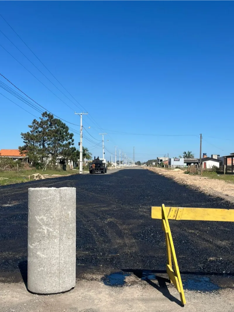 Na Caminhos do Mar, entre a 5ª e 7ª Avenida, a pista já recebeu massa asfáltica e está liberada, aguardando apenas a pintura.