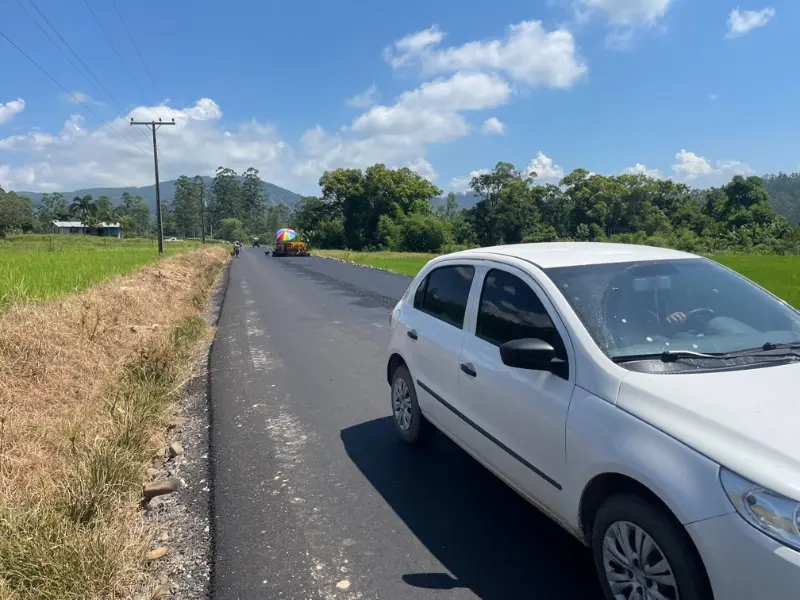 Pavimento foi finalizado na tarde desta quinta-feira, possibilitando fazer o trajeto entre Centro e Pinheirinho do Meio em rodovia asfaltada