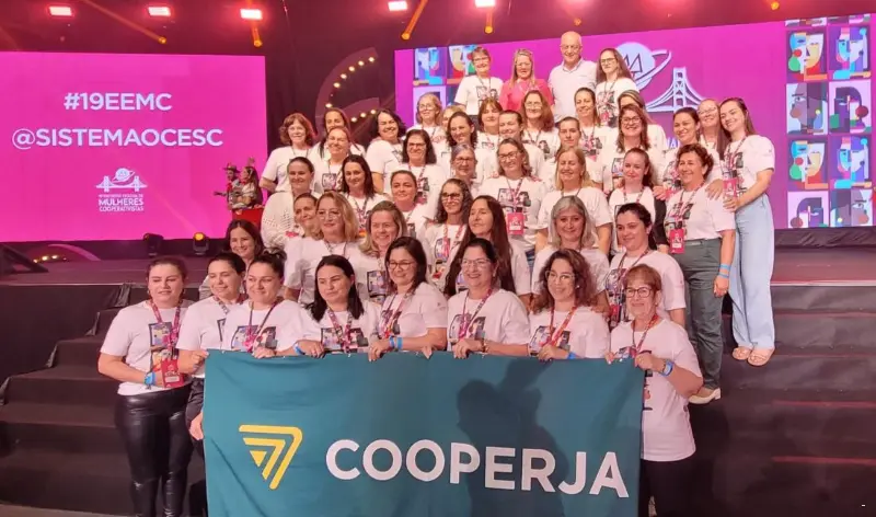 A Cooperja novamente participa do encontro feminino do cooperativismo catarinense na capital, em Florianópolis, promovido pelo Sescoop/SC. Nos dias 10 e 11 de setembro, cerca de 45 mulheres integrantes dos núcleos femininos da cooperativa estiveram reunidas com mais de 1200 outras mulheres, entre cooperadas, esposas de cooperados, colaboradoras e lideranças das cooperativas que desenvolvem trabalhos voltados a esse gênero. Neste ano estiveram representadas no evento 48 cooperativas catarinenses de diveros setores do cooperativismo do Estado, que são eles agropecuário; consumo; crédito; infraestrutura; saúde; trabalho; produção de bens e serviços; e transporte.