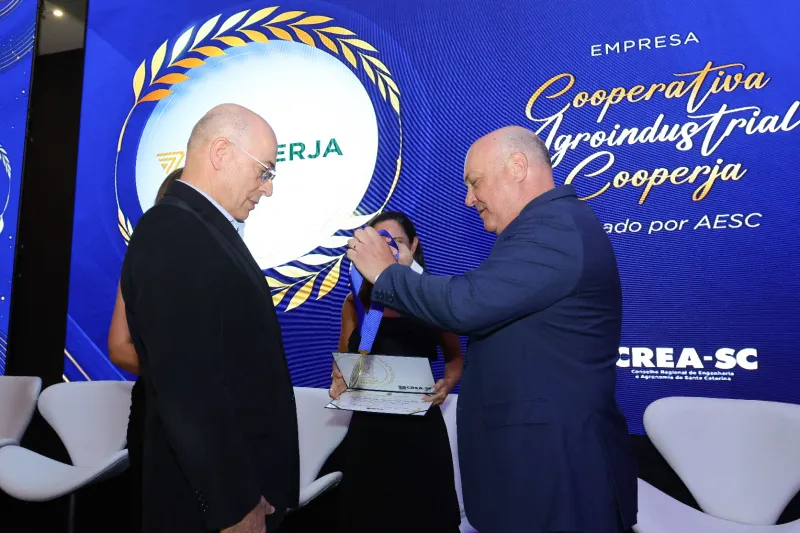 A Menção Honrosa, concedida à Cooperja, reconhece instituições que contribuem para o progresso e para o desenvolvimento socioeconômico do Brasil. Para o presidente da Cooperja/Ocesc, Vanir Zanatta, a homenagem representa o reconhecimento de uma trajetória construída com responsabilidade, inovação e compromisso com o desenvolvimento regional. “Essa homenagem, a Cooperja divide com cada profissional da engenharia que passou por nós. A começar pelo engenheiro agrônomo, Dr Joaquim Pedro Coelho, idealizador da nossa Cooperja. Hoje 56 anos após, somos agraciados com esse importante reconhecimento, eles fazem a diferença entre fazer do mesmo jeito e fazer melhor, em todas as áreas que atuam. A todos os nossos profissionais da engenharia, para AESC/Sul, muito obrigado. Em nome do cooperativismo catarinense, que nesta noite estava representado pela Cooperja e pela Ceraça, gratidão ao CREA/SC pela indicação e reconhecimento. É por esses momentos, que vale a pena todo nosso esforço”, agradece Zanatta.