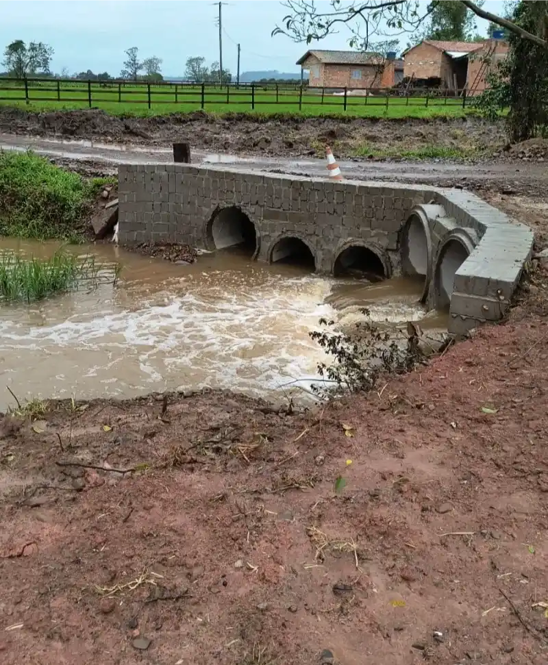 Foram observados ainda pontos de escoamento natural e sistemas de drenagem funcionando dentro da normalidade, evitando danos às estradas, residências, ruas e pontes.