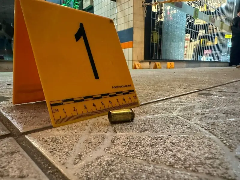 No local, a perícia encontrou e apreendeu várias cápsulas de pistola .9mm tanto na calçada, quando no interior da conveniência.