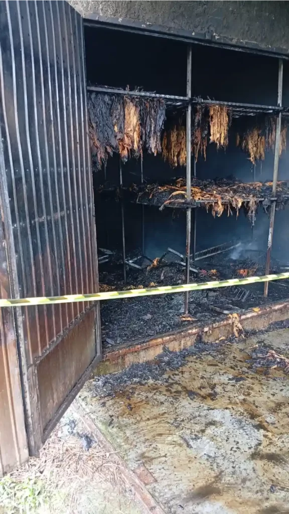 De acordo com as informações repassadas pelo COBOM, o fogo atingiu o interior da estrutura utilizada para a secagem de fumo. Ao chegar ao local, a guarnição do caminhão ABTR-188 confirmou a situação e iniciou imediatamente o combate às chamas.