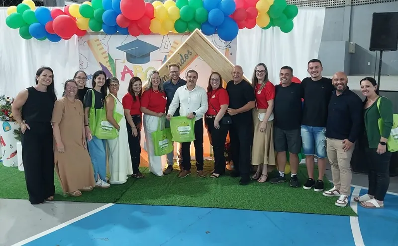 Professores, gestores e demais profissionais educadores de Santa Rosa do Sul, Balneário Gaivota, Jacinto Machado, Sombrio e Dom Pedro de Alcântara/RS lotaram a quadra do Parque Municipal da Polvilhana, na noite desta segunda, para um grande evento regional que marcou o início do ano letivo 2026. Realizado em parceria com o sistema de ensino Aprende Brasil, o encontro integra a formação continuada da Educação dos municípios, com objetivo de manter as equipes sempre atualizadas e preparadas no que se refere aos desafios da área. “Um grandioso encontro, que tivemos o orgulho de sediar e que representa, realmente, toda a nossa responsabilidade e preocupação com a qualidade do ensino dedicado às nossas crianças. Com profissionais qualificados e bem preparados, o resultado sempre será alunos bem formados para a vida e para o mundo que os espera”, declarou o prefeito anfitrião, Almides Roberg da Rosa.