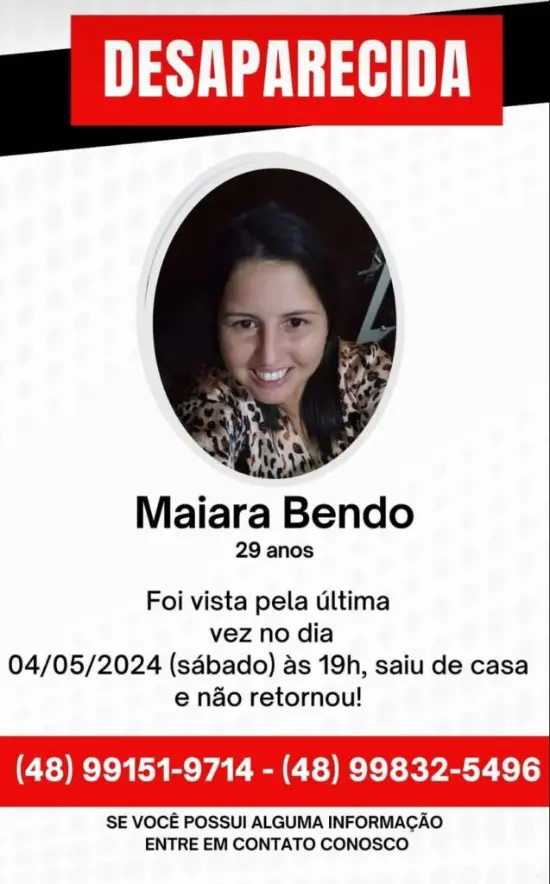 Segundo informações de familiares, ela saiu da casa dos pais no bairro Gávea por volta das 19h, dizendo que iria para uma festa em Jacinto Machado e desde então não foi mais vista. Maiara deixou a casa usando apenas a roupa do corpo (uma calça jeans e uma blusa xadrez de cor verde) e o telefone celular está desligado.