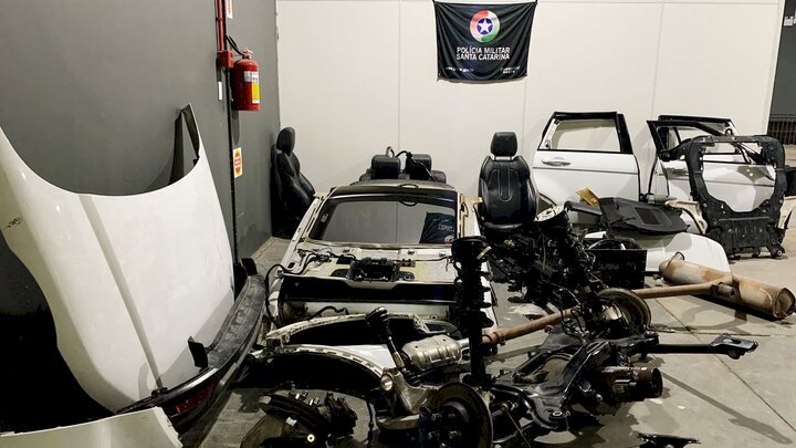 Através de informações repassadas, as guarnições do CPAE conseguiram chegar em um comércio de autopeças usadas (ferro velho), onde apontava a localização de um veículo I/Land Rover Evoque, com registro de furto no estado do Paraná.
