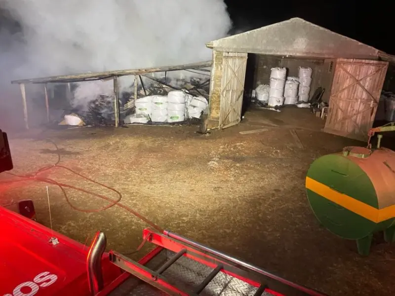 Quando a guarnição do Corpo de Bombeiros chegou ao local, as chamas já tinham destruído toda a estrutura utilizada para armazenado de feno e calcário,