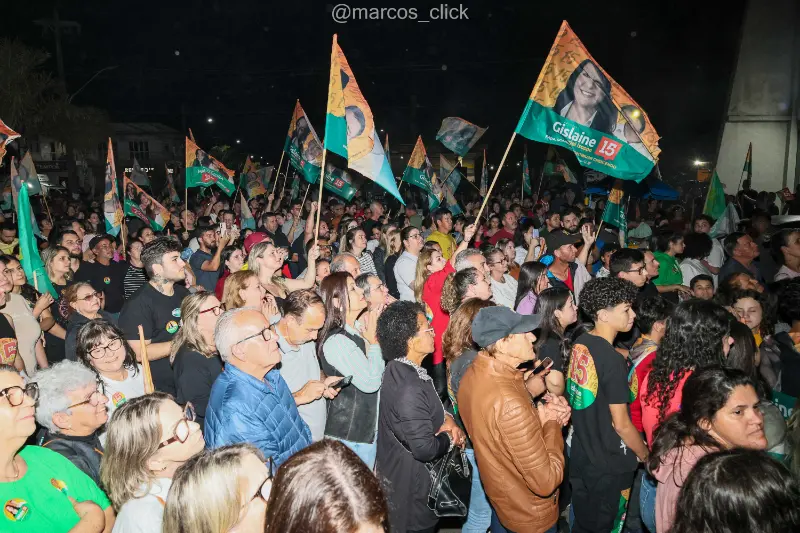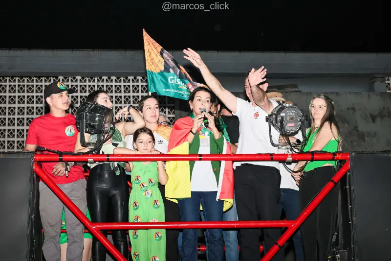 A comemoração da vitória aconteceu na Avenida Nereu Ramos, em frente ao Complexo Sant´helena de Sombrio. Em um discurso emocionante, Gislaine destacou o momento histórico para Sombrio e Santa Catarina, ao ser reeleita como a primeira mulher a ocupar um cargo tão importante. Durante sua fala, a prefeita fez questão de usar a bandeira de Sombrio sobre os ombros, reforçando que seu governo é para toda a população. Gislaine agradeceu a todos pelo trabalho e empenho durante a eleição, ressaltando que ela e seu vice, Jeriel, continuarão buscando fazer mais e melhor pelo município de Sombrio.