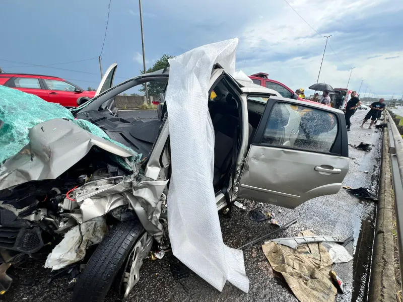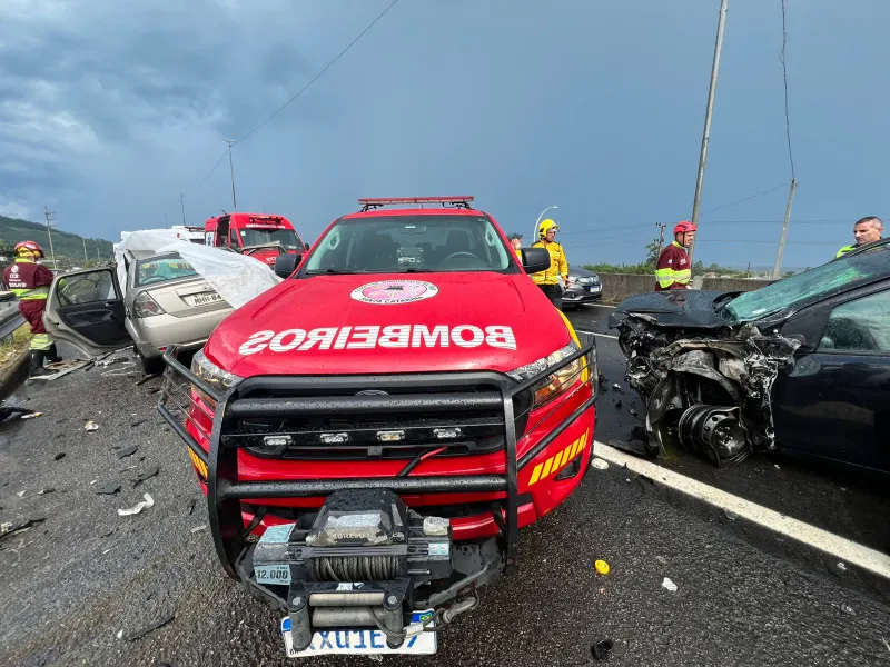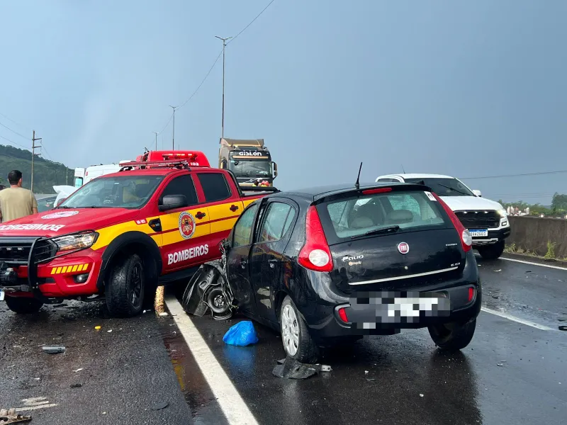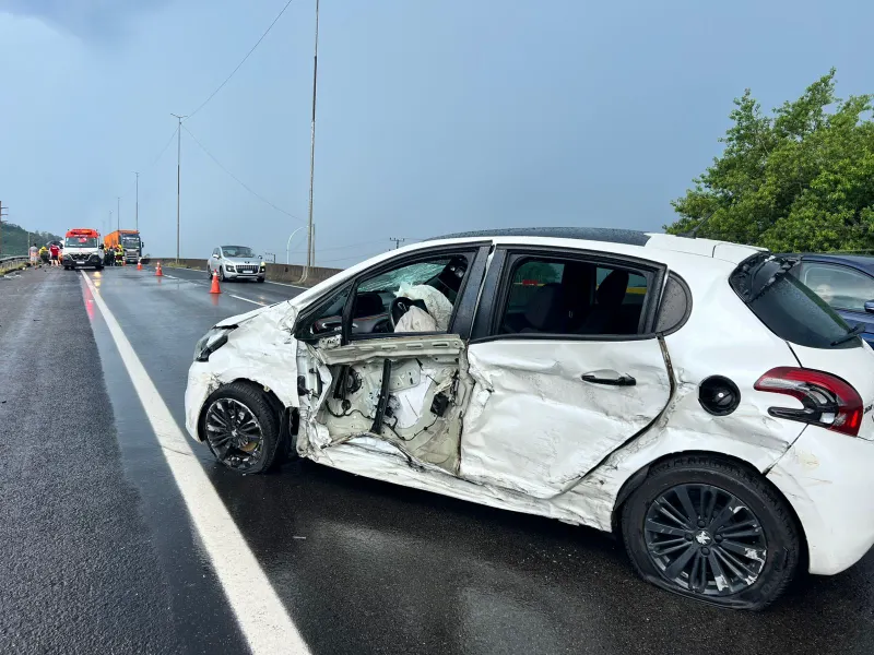A colisão envolveu três veículos: um Peugeot, um Palio e um Fiesta. Equipes da CCR ViaCosteira, do Corpo de Bombeiros e da Polícia Rodoviária Federal foram acionadas para atender a ocorrência.