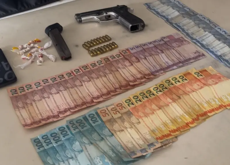 Ainda conforme a PM, durante as buscas foi encontrada na casa R$ 1.289,00 e 10,22 gramas de crack, fracionadas prontas para a venda. O Tático efetuou buscas nas proximidades, localizando uma arma de fogo (pistola 380, municiada com 18 munições) em um ginásio abandonado próximo da casa.