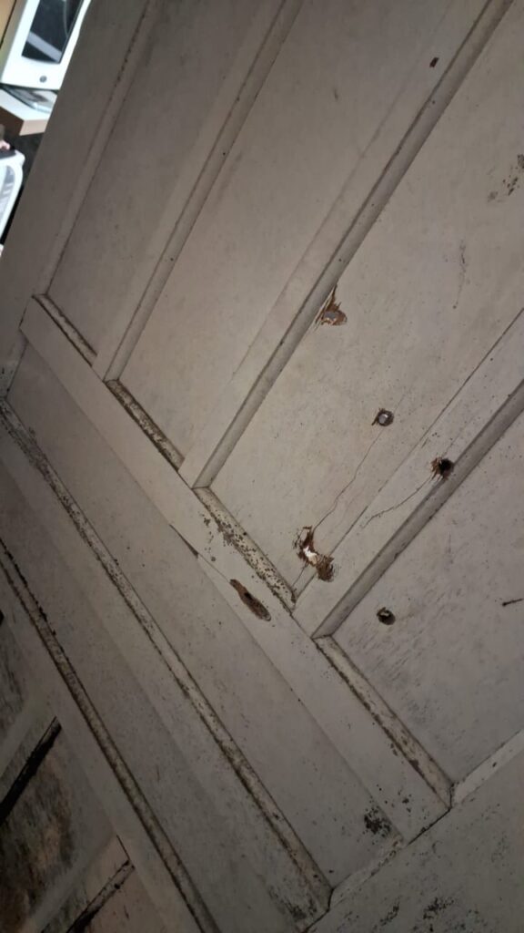 Conforme apurado, as paredes do pequeno imóvel de madeira ainda apresentavam as marcas da tentativa de incêndio criminoso. A polícia acredita que o autor dos disparos tentou atear fogo com intuito de fazer com que a vítima saísse do imóvel. A porta da frente foi perfurada pelos disparos.