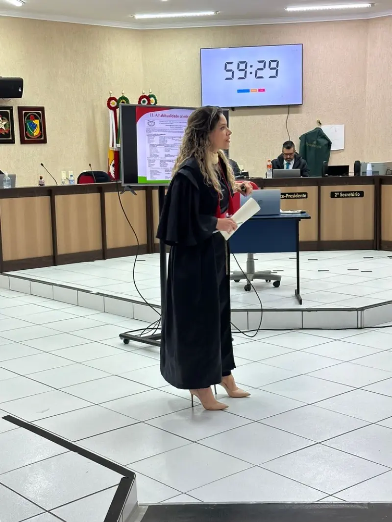Jurados reconheceram que crime foi praticado por motivo fútil e mediante emboscada. MPSC foi representado pela Promotora de Justiça da Comarca de Santa Rosa do Sul, Juliana da Costa Lima Cangussu.