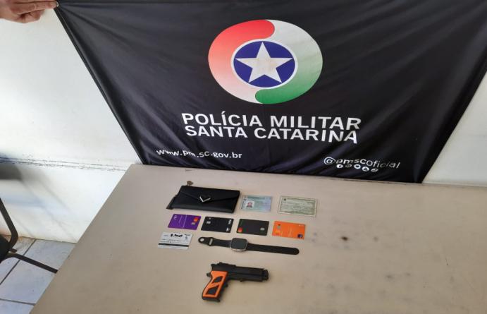 O suspeito, um jovem de 18 anos, foi abordado enquanto andava de bicicleta preta. Na cintura dele, foi encontrado um simulacro de arma de fogo, além de um aparelho celular, cigarros e chocolates. A vítima do furto foi contatada e reconheceu o autor, pois, no momento do crime, viu o suspeito mexendo em seu carro e correu atrás dele.