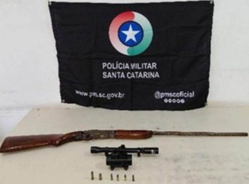 Nas proximidades do local, os policiais obtiveram informações com um vizinho sobre o paradeiro do homem e realizaram a abordagem. Durante buscas na residência, foram localizados uma espingarda calibre 36, quatro munições calibre 22, uma munição calibre 38 e uma munição calibre 32.