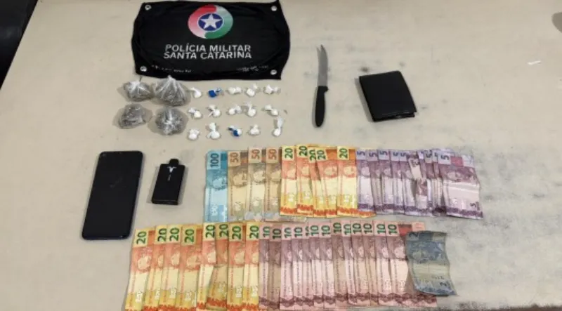 Na noite de sexta-feira (10), a Polícia Militar de Jacinto Machado prendeu um homem de 24 anos por tráfico de drogas no bairro Arizona. A ação ocorreu após denúncias anônimas informarem que o suspeito usava um veículo GM Celta preto para realizar a venda de entorpecentes.