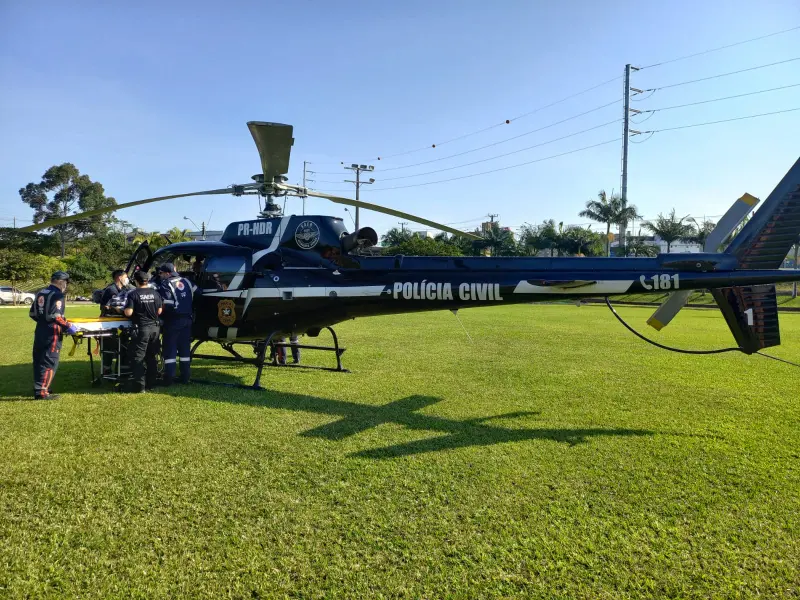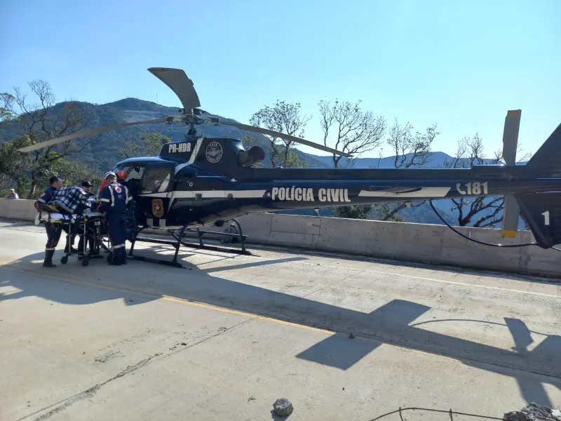 Nesta quinta-feira, dia 1º de agosto, volta das 12h30, a aeronave da Polícia Civil foi acionada pela Central de Regulação de Urgências SAMU para um atendimento emergencial. A bordo, policiais do Serviço Aeropolicial de Resgate (SAER) e profissionais de saúde do serviço Aeromédico SAMU, foram enviados para atender a uma queda de 5 metros de altura nas obras da Serra da Rocinha, em Timbé do Sul.