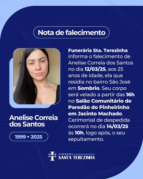 Anelise morreu no local, mas foi levada ao hospital para tentativa de salvar o bebê, sem sucesso. Moradora do bairro São José, seu velório será às 16h desta quinta, dia 13, no Salão Comunitário de Paredão do Pinheirinho, em Jacinto Machado.